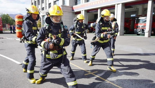 近日,拉萨市墨竹工卡县消防救援大队在营区组织开展消防应急救援演练。