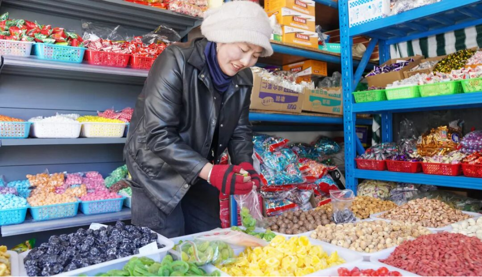 商户旦增卓嘎:“年前县城里人气特别旺,去年我的糖果生意就很不错。你看这些造型新颖的糖果,都是我从抖音上学来的新样式,顾客们都特别喜欢。今年我更有信心,生意肯定能比去年更红火!”