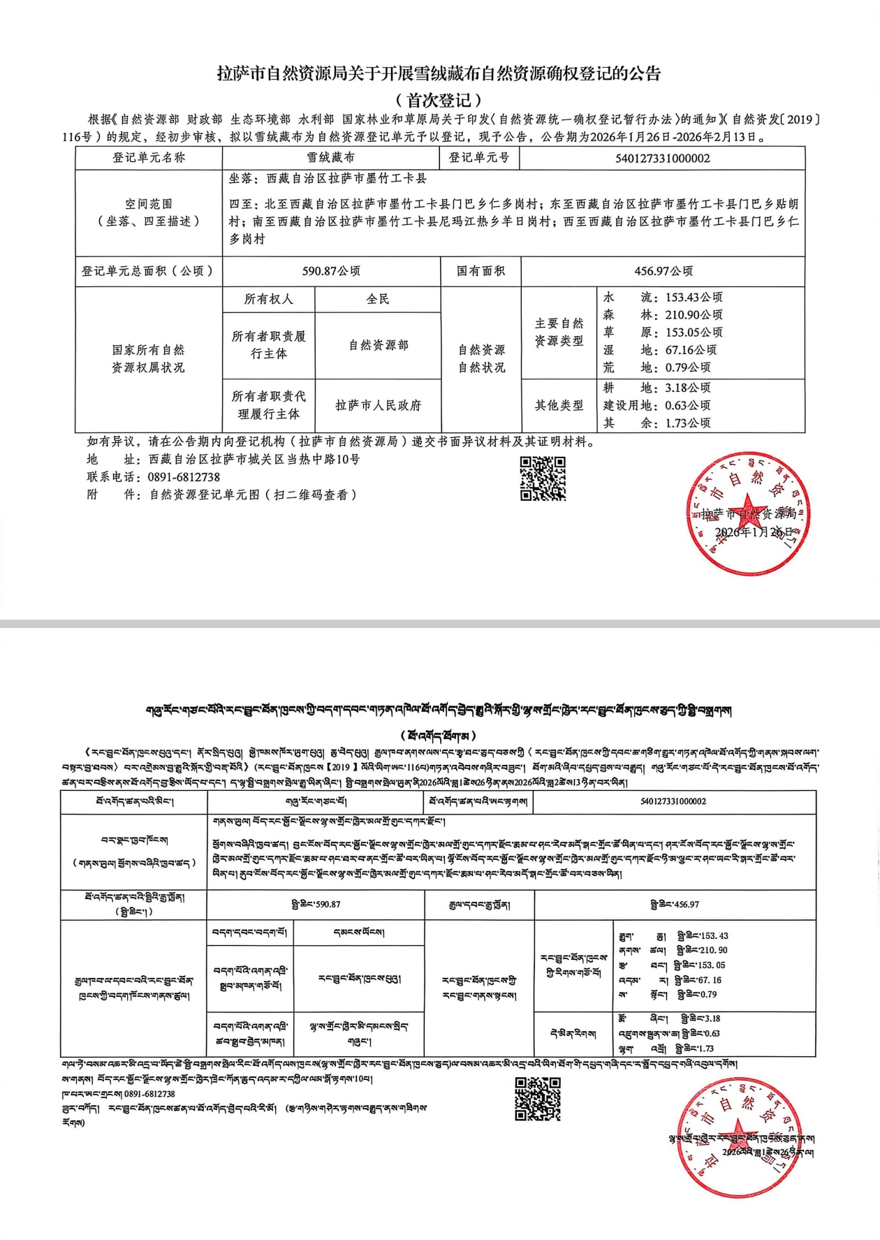 拉萨市自然资源局关于开展雪绒藏布自然资源确权登记的公告