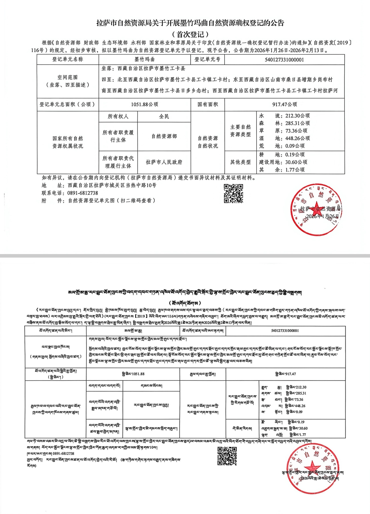 拉萨市自然资源局关于开展墨竹玛曲自然资源确权登记的公告