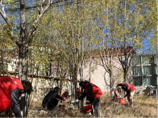 扎雪乡开展“文明实践在行动 白衣护树迎寒冬”树木涂白活动