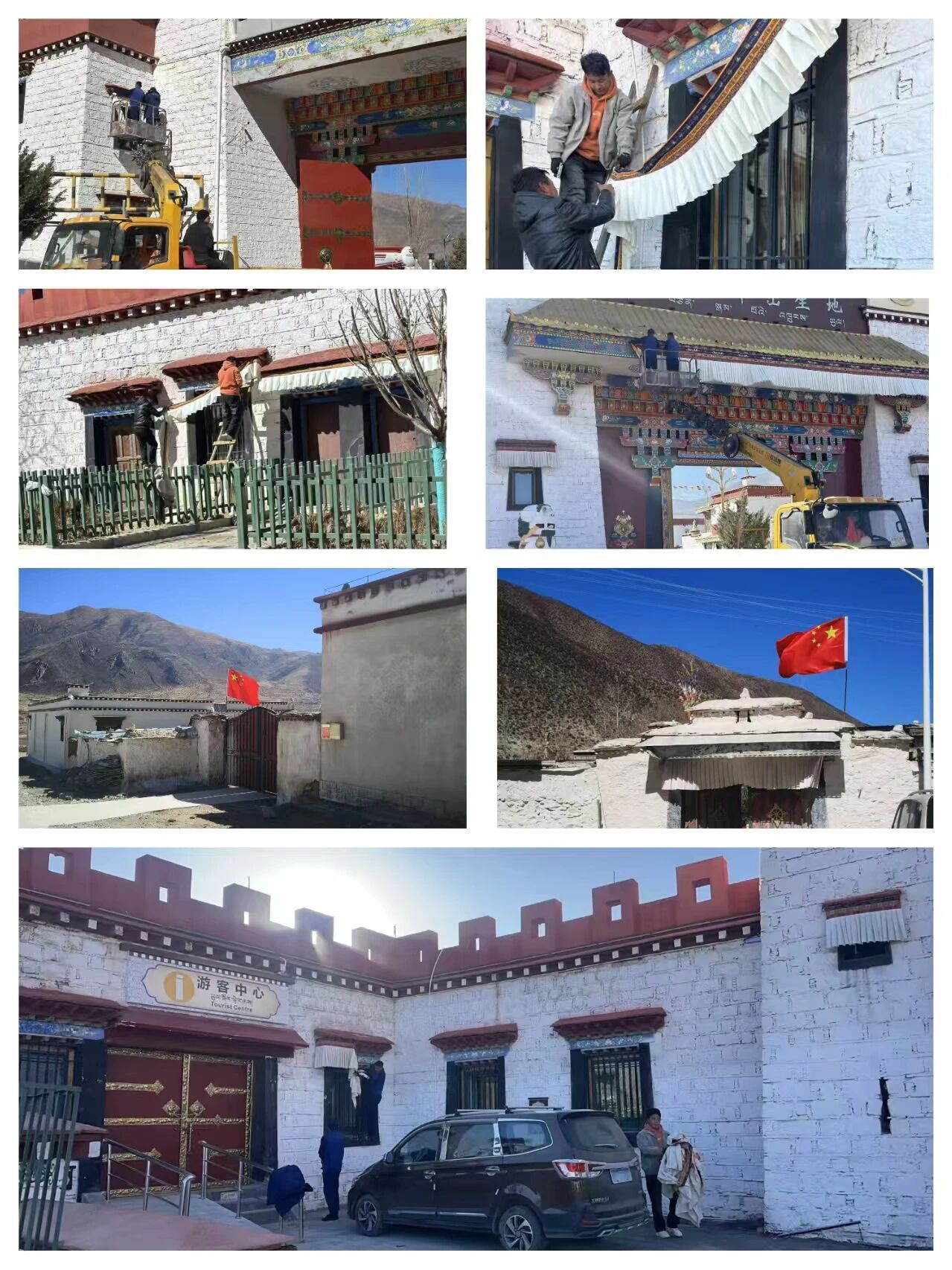 甲玛镇对辖区旅游景点进行美化装饰,并积极更换褪色、破损国旗,着力营造喜庆祥和的节日氛围。